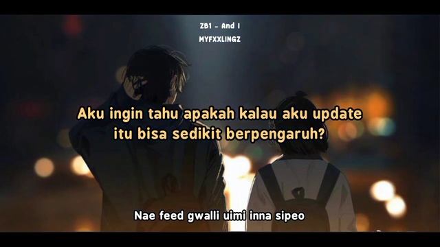 If you like this channel, you can support me by donating (Jika kalian suka dengan terjemahan yang aku buat di channel ini. Kalian bisa dukung aku dengan cara berdonasi) : https://trakteer.id/myfxxlingz/link [❗] I don't make any profit from this channel, all the advantages of ads for the original artists. ? Artist : ZB1 ? Title : And I ? Album : Youth In The Shade * Terjemahan : Myfxxlingz • Romanji : geniuslyric * Streaming MV https://youtu.be/trzeUClQIIg ~~~~~~~~~ ? Like, Comment, Subscribe ? ? Save? Izin! ? Repost jangan tutup watermark! ? Mohon maaf apabila ada kesalahan dalam hal penulisan lirik dsb. Saya sangat menghargai kritik atau saran apabila itu di sampaikan dengan baik. ~~~~~~~~~ ⚠️ Terjemahan tidak sepenuhnya benar namun tanpa mengurangi makna yang ada di dalam lagu. Mohon sertakan 'Credit' apabila ingin memakai Sub/Video. Hargai kerja keras saya dalam membuat terjemahan ini. Terimakasih ^^ #zerobaseone #andi #terjemahan #ZB1 #우주먼지 #제로베이스원 #YOUTHINTHESHADE #myfxxlingz #kpop #subindo #kpoplirik