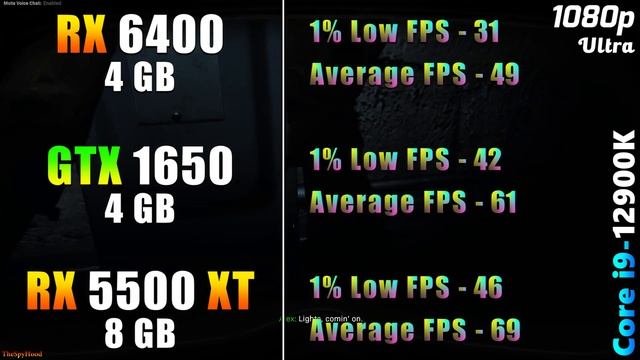 RX 6400 4GB vs GTX 1650 4GB vs RX 5500 XT 8GB | PC Gameplay Tested in 1080p System Specs : Operating System : Windows 10 Pro 64 Bit CPU : Intel Core i9-12900K (Gigabyte Z690 AORUS Master) GPU 1 : AMD Radeon RX 6400 4GB GPU 2 : NVIDIA GeForce GTX 1650 4GB GPU 3 : AMD Radeon RX 5500 XT 8GB CPU Cooler : MSI MAG Coreliquid C360 AIO Liquid Cooler PSU : Cooler Master V1000 SMPS RAM : 4*16GB DDR5 5200MHz Thank You for watching........please hit the thumbs up button and share if you like it and also please subscribe to my channel as this will motivate me and help me to make more videos like this.......