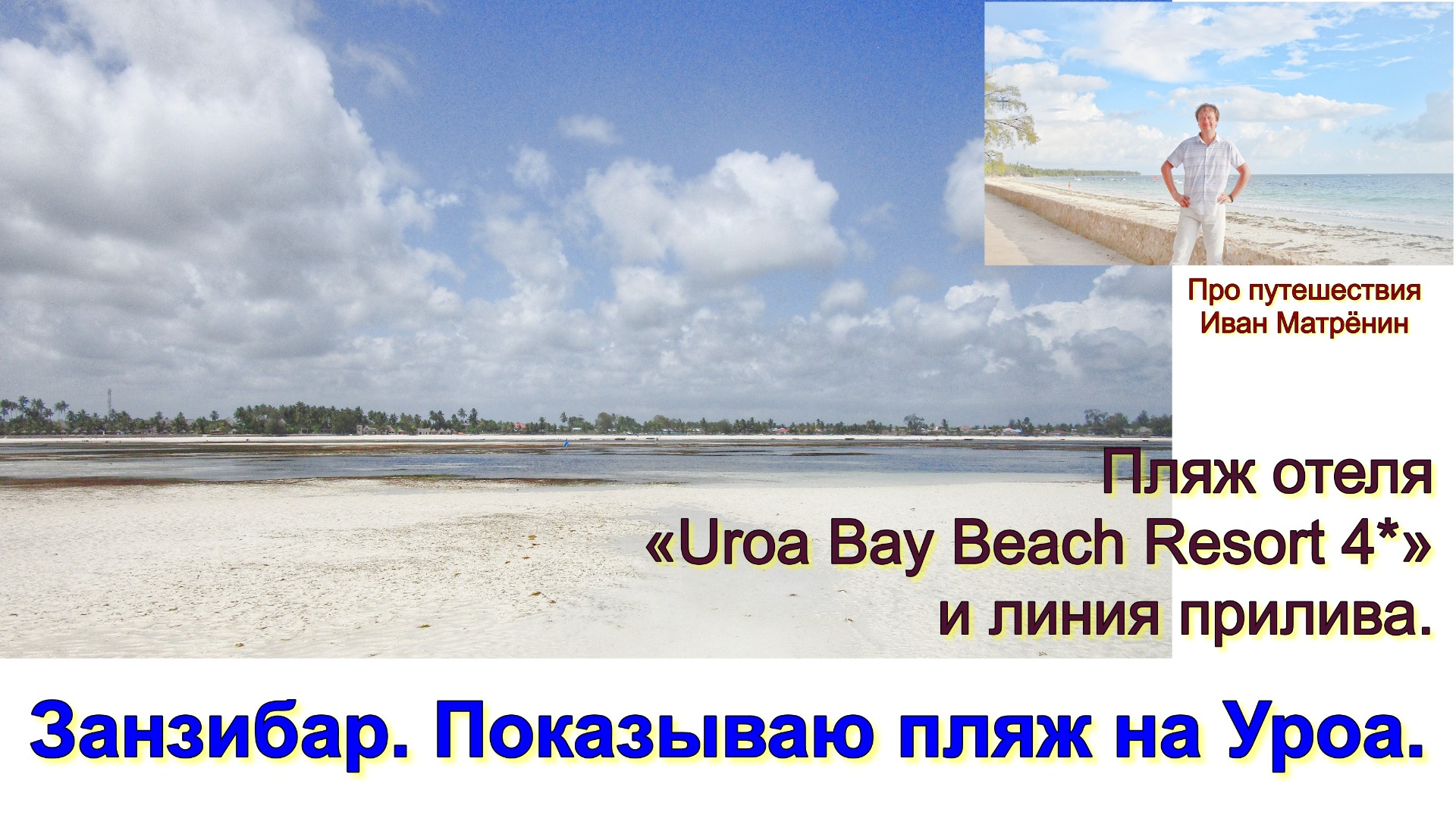 На видео иногда пропадает мой голос, ветер задувает. Видео снимал «с рук», временами страдает качество картинки и звук, зато вы видите реальные кадры, без рафинированной обработки. На видео местечко Уроа, на Занзибаре, пляж отеля «Uroa Bay Beach Resort 4*». Рассказываю Вам здесь об особенностях пляжа, океана, купании в приливы и отливы. Смотрите! Видео можно посмотреть: На моём канале в яндекс.дзен, «Про путешествия. Иван Матрёнин». Адрес в Дзене - https://zen.yandex.ru/travelblogger. Ссылка на это видео - https://zen.yandex.ru/media/travelblogger/zanzibar-pokazyvaiu-pliaj-na-uroa-pliaj-otelia-uroa-bay-beach-resort-4-i-liniia-priliva-5ff9faa2bb14d54ffb4f9d71 На моём канале в YouTube - ищите Travel blogger Ivan Matrenin. Ссылка на это видео - https://youtu.be/Ik_HzGcFB1I Ссылка на это видео: в Rutube - https://home.strannik-j.org/video/43186143b348b02e2d76e52bb3eecbf9/ Вконтакте - https://vk.com/video19642848_456239939 Одноклассники - https://ok.ru/video/2299666696714 Фейсбук - https://business.facebook.com/106034098170339/videos/885462695544035/ Также можете смотреть видео у меня в аккаунте Instagram - https://www.instagram.com/ivanmatrenintravelbl/ Ссылка на это видео - в IGTV - https://www.instagram.com/tv/CKlRYvjnth1/