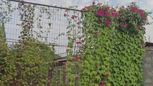 Как выглядит сейчас опора с розами и клематисами.