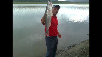 Ловля судака на резинку с берега.