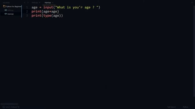 #UniversalProgrammer Next Video :- https://youtu.be/Y3E4boedv3Y Link to Python for Beginners :- https://youtu.be/eZ_KwW-YwlY input in python gives a str in python3 if you are using python2 use raw_input() instead of input() input is a function in pyton3 Leave you'r queries in the comment section bellow