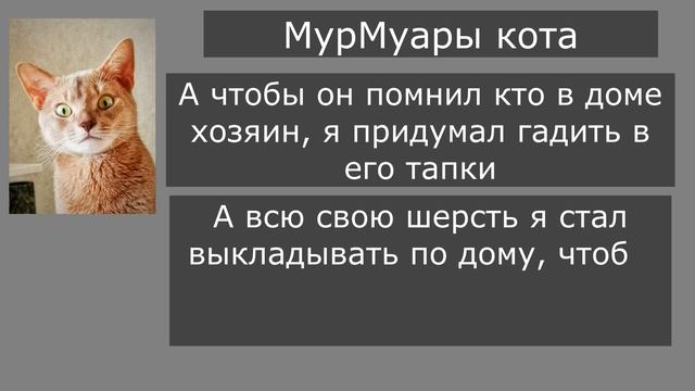 Мурмуары кота КотДзен и его хозяина. Смешной чат с котом. Забавный кот и его хозяин. 26 серия Всем привет и это канал Кот Дзен, где забавный и смешной кот попадает в различные ситуации. Здесь вы можете увидеть его приколы, забавные и шутки и кошачью непосредственность. У нас развлекательный канал с небольшими смешными видео, приколами и главным гером - котом по кличке Кот Дзен. Мы не материмся и не используем слова, которые могут навредить детям, поэтому для них наши видео тоже подходят. Кот Дзен вечно сидит в интернете, пишет многим людям и попадает в свои нелепые и забавные истории. Он добрый и смешной кот, которого любят все. В реальной жизни - это абиссинский кот по кличке Симба, который и послужил прототипом канала Кот Дзен. Подписывайтесь на наш канал с приколами и смешным котом Кот Дзен. Не забывайте ставить лайки и оставлять свои комментарии. Для донатов котику - https://yoomoney.ru/to/410011699198547