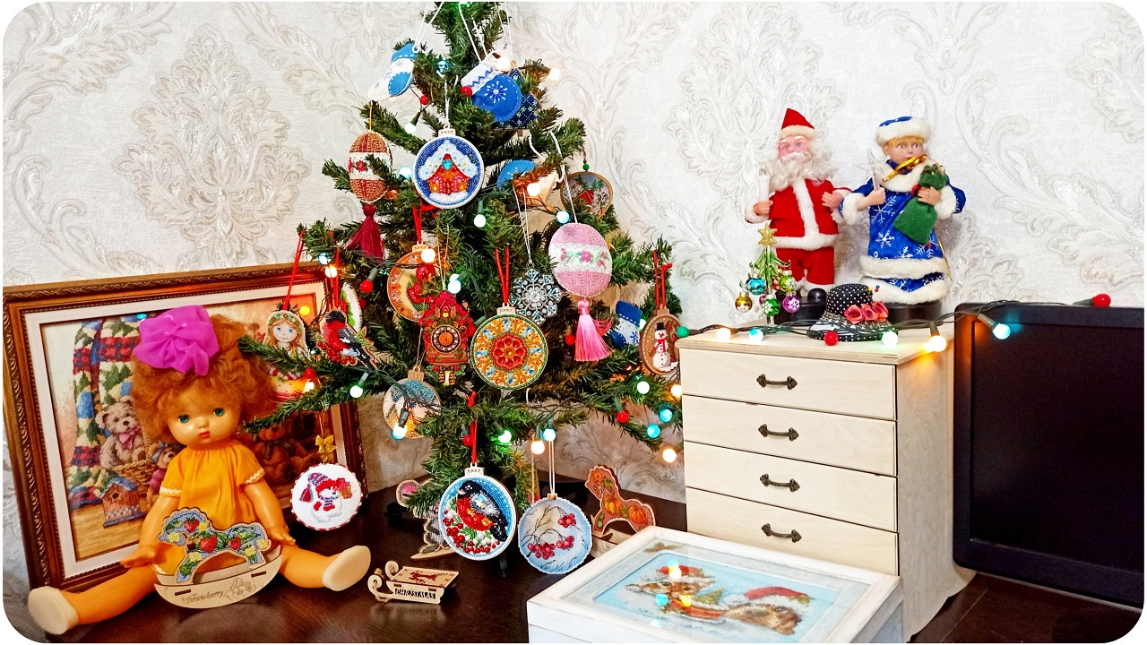 Накануне Нового года ? какие планы? Ёлка с вышитыми игрушками 2023.