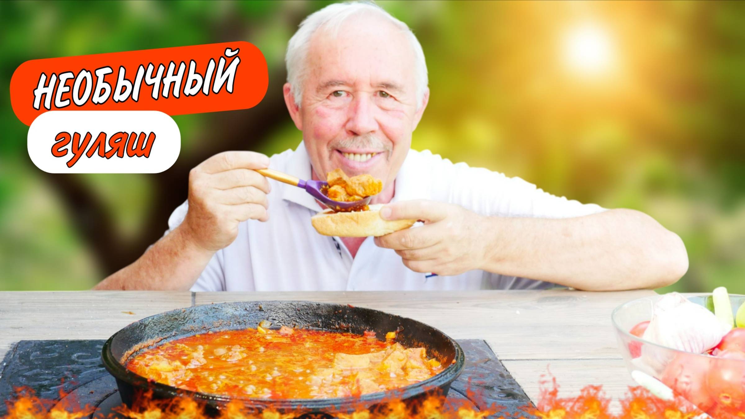 Необычный гуляш в сковороде на костре