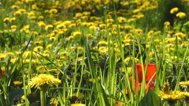 Flowers. Dandelion. The bee. Nature. Spring. Footag 4K. Panasonic HC-X1000
