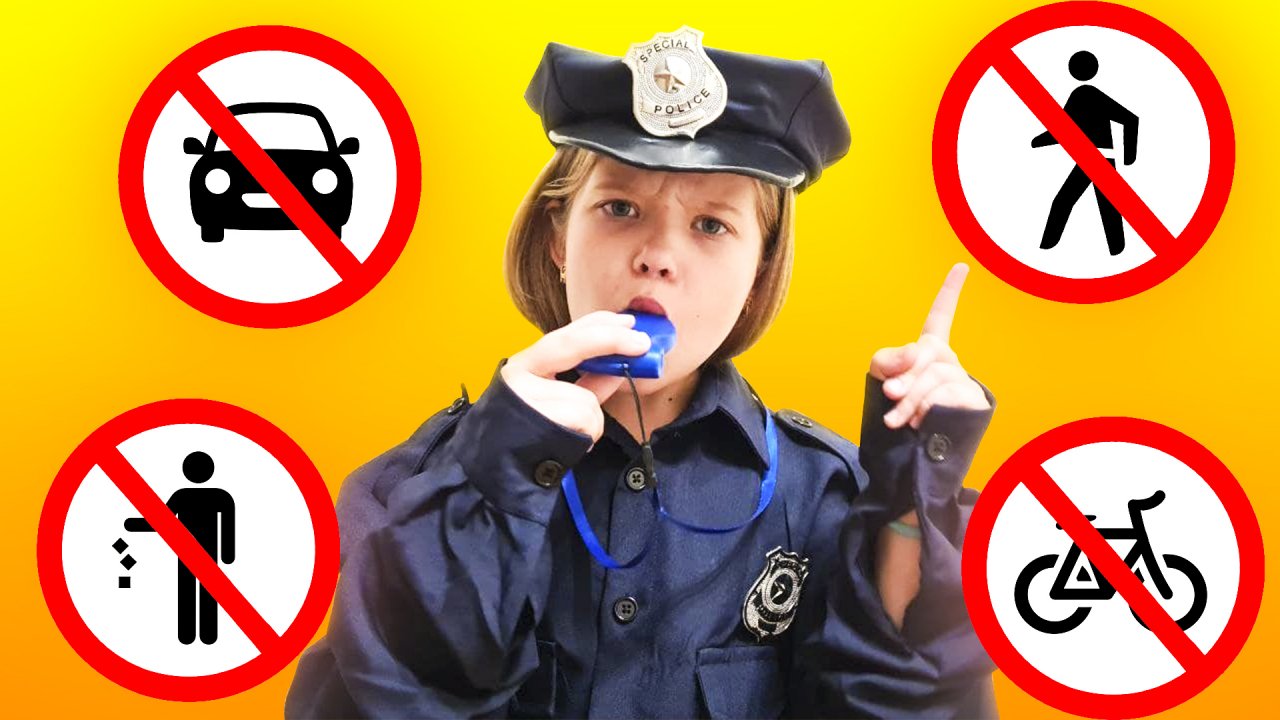 Лера притворяется, что играет в полицейскую погоню и изучает правила безопасности. Образовательное видео для детей.
