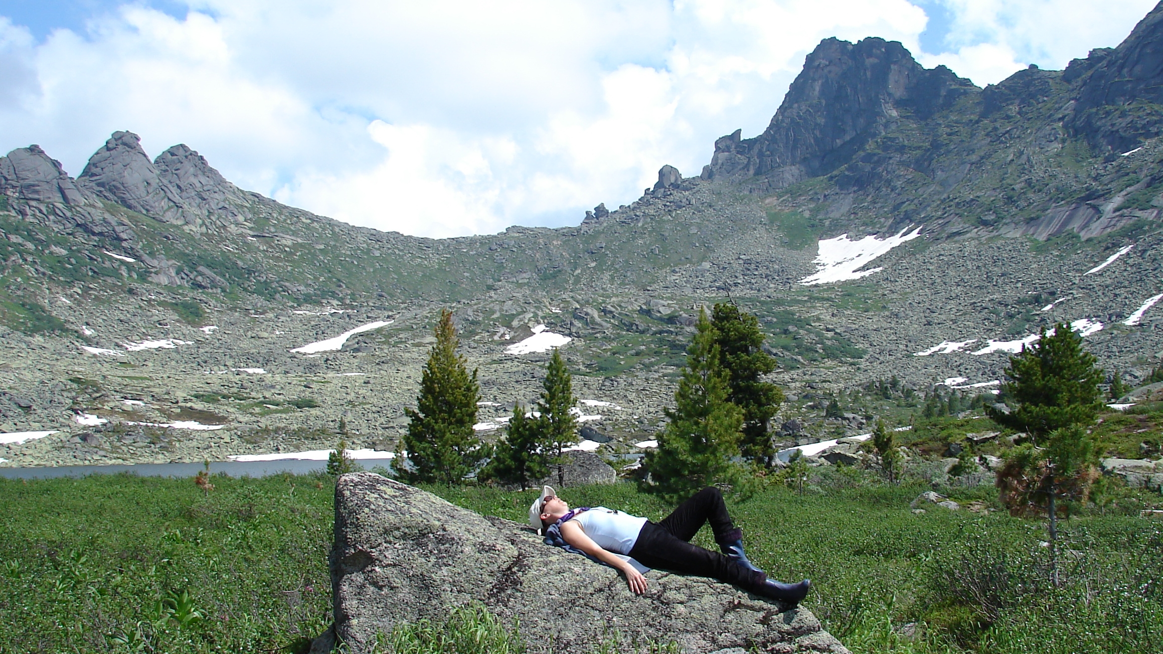 Песня - благодарность Александру Давыдову. Слова - Александр Давыдов, музыка и исполнение - Елена Рязановская (г. Минусинск Красноярского края, КГБ ПОУ "Минусинский колледж культуры и искусства"). Последний куплет про Ергаки (изображены на заставке) был написан позднее, поэтому не исполняется. И море, и горы! Как славно, мой бог! И в скалы от страха вцепившийся мох, И пота ручей от жары пересох, И слышится Леночкин жалобный вздох: «Спасибо природе, спасибо судьбе, Спасибо большое, Давыдов, тебе». Внизу под ногами прибрежный парник. Покинув укромный пещерный тайник, Приветственно машет нам струйкой родник, И слышится Леночкин радостный крик: «Спасибо природе, спасибо судьбе, Спасибо большое, Давыдов, тебе!». Прохладно горят в Коктебельском вине Огромные звёзды в орнамент луне. Лишь шелест прибоя плывёт в тишине, Да Леночка сладко бормочет во сне: «Спасибо природе, спасибо судьбе, Спасибо большое, Давыдов, тебе». Саяны. Ергаки. Крутой перевал. Вверху перед спуском желанный привал. И все то, что каждый столь тщетно скрывал, Вобрал в себя Ленин словесный обвал... Досталось природе. Досталось судьбе. И фраза повисла уже на губе: «Вовек не забуду, Давыдов, тебе…!».