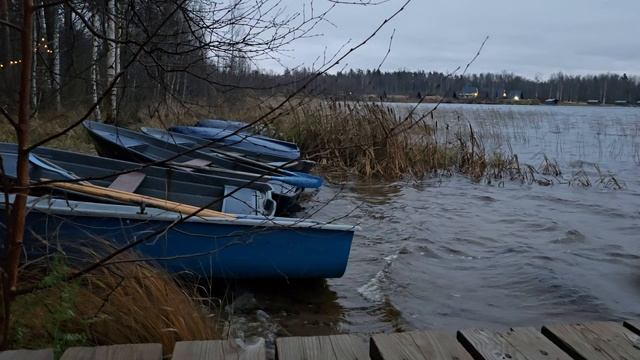 Причал в ненастный день. Шум волн, лодочки, озеро Нарядное. Карелия, ноябрь. Атмосферное видео | Релакс Видео для фона #релакс #фон #звуки #атмосферное #волны #лодки #карелия #озеро