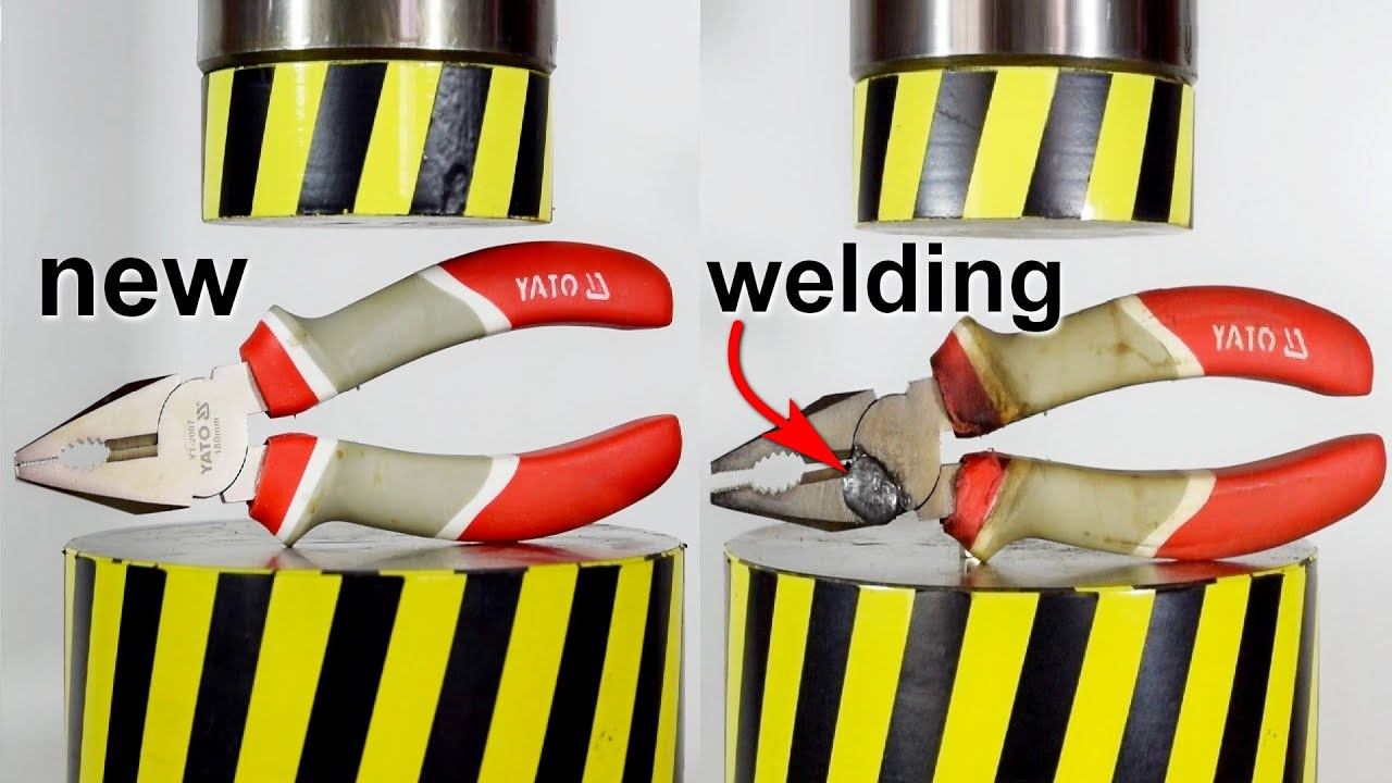 Hydraulic press vs objects repaired by welding