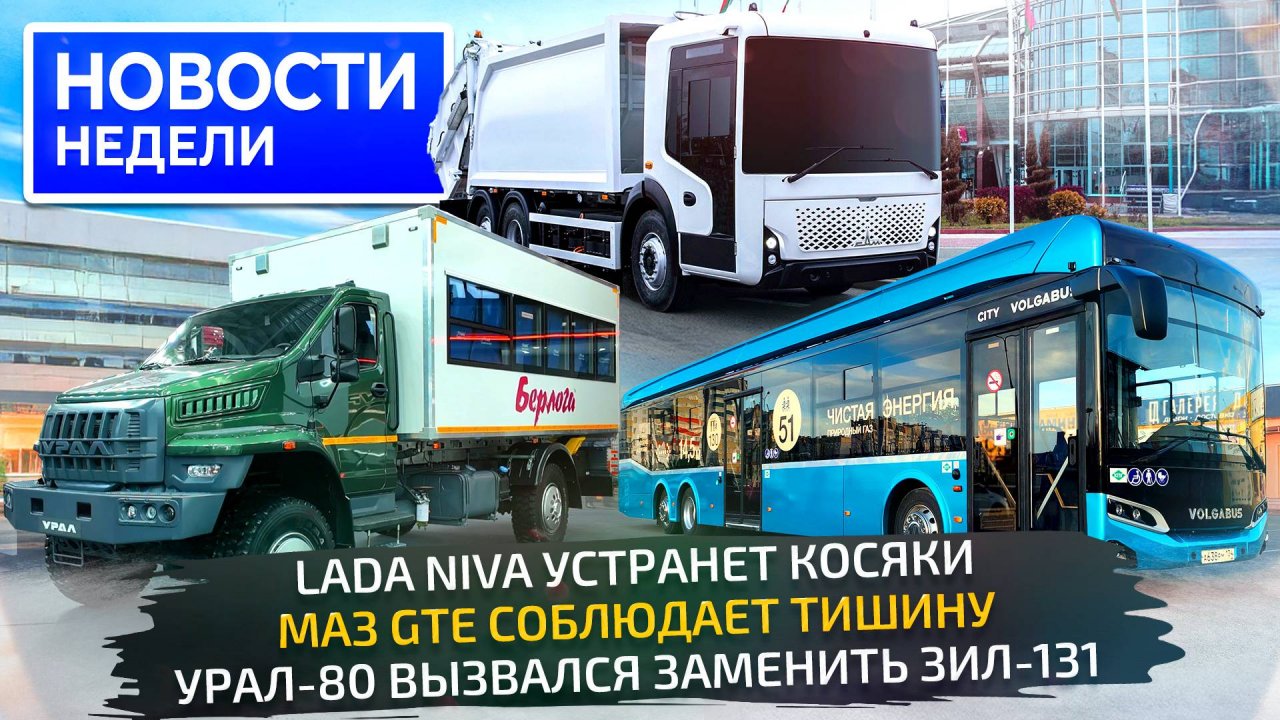 Новый Урал, электро-МАЗ, тяжёлый БАЗ и лёгкий КамАЗ, косяки Нивы и Volgabus 6×2📺 Новости недели 320