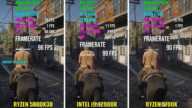 AMD RYZEN 7 5800X3D vs INTEL i9-12900K vs RYZEN 7 5700X | Test in 6 Games | 1080p Ultra Benchmarks Amazon Affiliate Link ✅ {United States} ? AMD RYZEN 7 5800X3D https://amzn.to/37LvLtm ? AMD RYZEN 7 5700X https://amzn.to/3EgW1I1 ? INTEL i9-12900K https://amzn.to/3ty7M85 ? NVIDIA RTX 3070 https://amzn.to/3BbqVPa ✅ MY PC Specs ? AMD CPU : https://amzn.to/3dzDpGs ? NVIDIA GPU : https://amzn.to/3wnklUm ? G.SKILL RAM : https://amzn.to/2PyaqL5 ? NVME SSD : https://amzn.to/3sPKN6W ? LIQUID COOLER : https://amzn.to/3rOh8tE ? MOTHERBOARD : https://amzn.to/3cMIBr3 ? POWER SUPPLY : https://amzn.to/3ukNcaa ? PC CABINET : https://amzn.to/3rMnDgw ✅ 5700X vs 12900K vs 5800X3D Benchmarks 00:00 - Assassin's Creed Valhalla 01:24 - Watch Dogs Legion 02:33 - Cyberpunk 2077 03:54 - Red Dead Redemption 2 05:14 - Horizon Zero Dawn 06:40 - Assassin's Creed Odyssey ✅ Test Specs CPU : 5700X | 12900K | 5800X3D RAM : 2x16GB DDR4 3600MHz SSD : Samsung 970 EVO Plus SSD 1TB #5800X3Dvs5700X #12900Kvs5800X3D #MarkPC SEE YOU IN NEXT VIDEO !! Have a nice day !!