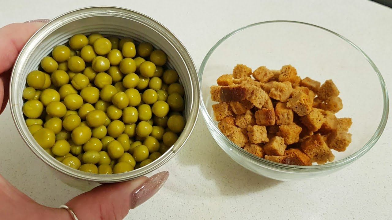 Беру банку ГОРОШКА и СУХАРИКИ и готовлю салат "ПАССАЖИРСКИЙ".