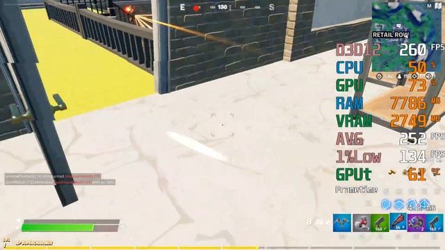 Fortnite Battle Royale Chapter 2 Season 5 Benchmark @ 1080p Competitive Settings i3-10100F -- RX 5500 XT 8GB Test Setup: CPU : Intel Core i3-10100F [The same CPU as the i3-10100, but without the IGP] [The i3-10100F is not unlocked, so you cannot overclock it (with the multiplier)] CPU Cooler : Stock Cooler RAM : G.Skill 16GB 3000MHZ CL16 RAM [2X8GB][Aegis F4-3000C16D-16GISB][XMP Profile](Not OCed) [XMP Profile was used, in windows it's running @ 2727MHz ] Motherboard : Gigabyte H470M DS3H (rev. 1.0) Graphics Card : Radeon RX 5500 XT GAMING OC 8G [GV-R55XTGAMING OC-8GD][8GB Video RAM][Not Overclocked] SSD : 1TB Samsung 860 QVO HDD : 6TB Seagate Backup+ + 8TB Seagate Backup+ CASE : Cooler Master MasterBox 5 PSU : Cooler Master G650M OS : Win 10 64 bit Monitor: BenQ 4K 60Hz AMD driver 20.11.3 The video was recorded with an external capture device.