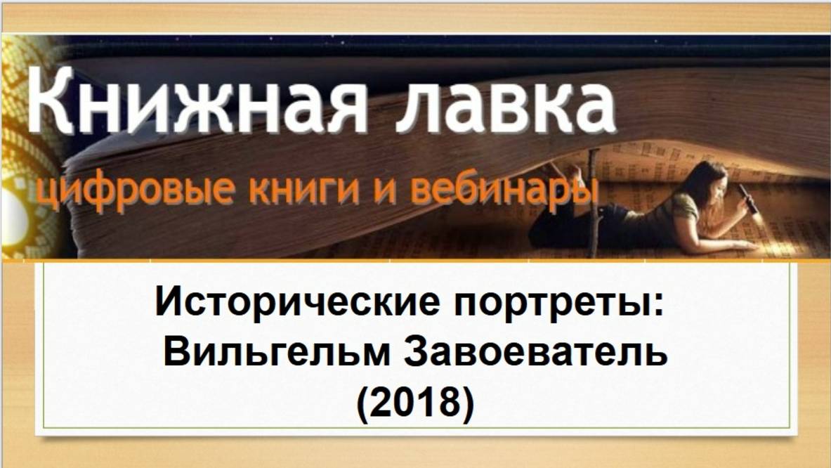 Исторические портреты: Вильгельм Завоеватель (2018) Первый вебинар Книжной лавки на эту тему состоялся 22.11.2018 г. Ведущая Ирина Дедюхова Смотреть/читать по теме: Исторические портреты: Вильгельм Завоеватель (2018) https://ogurcova-portal.com/istoricheskie-portretyi-vilgelm-zavoevatel/ (2018/2024) Источники: Научно-технический портал «Технарь» https://ogurcova-online.com/ "Книжная лавка" https://ogurcova-portal.com/ "Литературное обозрение" https://litobozrenie.com/ Вебинар разработан и проведен в рамках образовательных программ АНО ДПО СПБ УВТ - Санкт-Петербургский университет высоких технологий https://univer.spb.ru/ в соответствии с законодательством об образовательной деятельности в РФ N 273-ФЗ по лицензии №3911 Комитета по образованию Правительства СПб https://univer.spb.ru/wp-content/uploads/2019/12/license015small-1.jpg