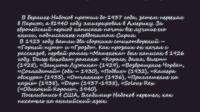 «Мир Набокова» к 125-летию со дня рождения В.В. Набокова. Авт. Пенькова Е.Н.