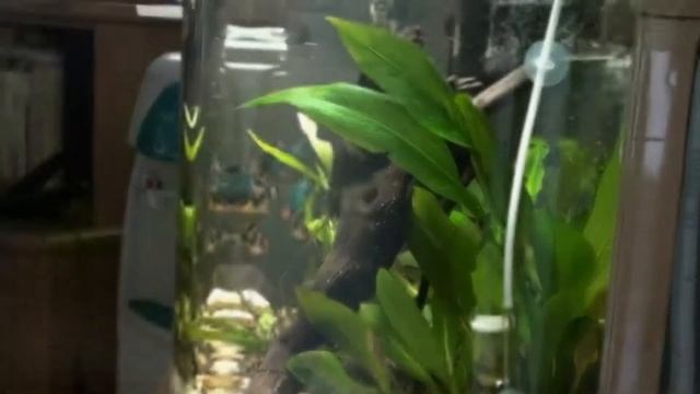 18 Gallon Tiger Barb Tank Update Trying to control diatoms (brown algae) -- Dwarf Sag all covered in it :( Almost all Java Fern melted :( Anubias & Sword growing like crazy :) All fauna still alive and kicking :)
