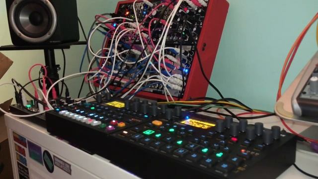 Getting the Digitakt into the mix. Digitone is providing clock. Everything is synced up to the modular via FH-2. #digitakt #digitone #elektron #eurorack #modularsynthesizer