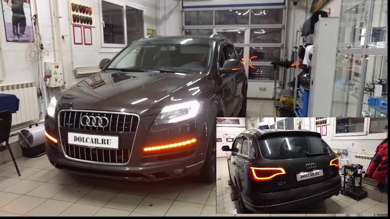 Как новогодняя елка Audi Q7 2013. Из штатных поворотников сделали еще и режим ДХО, конечно с сохранением функции мигания. В любой момент можно переключить на исходное состояние.
