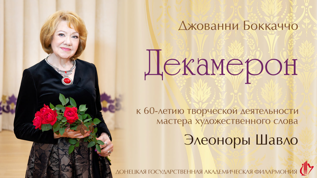 Ко дню рождения и к 60-летию творческой деятельности мастера художественного слова Элеоноры Шавло Донецкая филармония представляет музыкально-литературную программу «Декамерон». В исполнении Элеоноры Шавло прозвучат две новеллы из «Декамерона» Джованни Бокаччо - о соколе и о журавле. Гармонично вплетены в программу сонеты великого Франческо Петрарки – современника Боккаччо. Литературные шедевры дополняют произведения композиторов эпохи Возрождения: Антонио Вивальди, Клаудио Монтеверди и Джироламо Фрескобальди. В юбилейной авторской программе Элеоноры Шавло принимают участие: заслуженная артистка Украины Анна Братусь (сопрано) и лауреат международных конкурсов Владимир Слепенков (тенор), а также ансамбль солистов Донецкого академического симфонического оркестра имени С.С. Прокофьева в составе: Лада Малафий (скрипка), Нана Агумава (спинет), Елена Шагун (виолончель), Александр Алексеенко (гобой), Олег Салдан (флейта). Приятного просмотра!