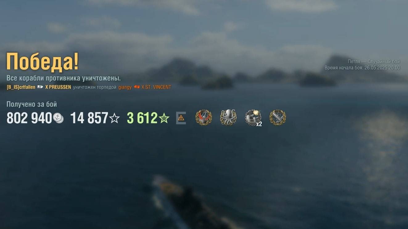 Линкор Preussen. Игрок: crtfallen (EU). Карта: Петля - Случайный бой. Урон: 294к. Preussen - Линкор Германии 10 уровня.