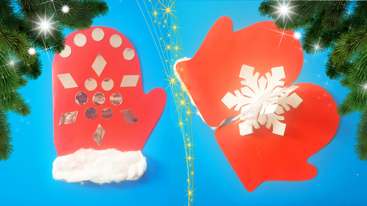 Новогодняя открытка "Варежки" своими руками