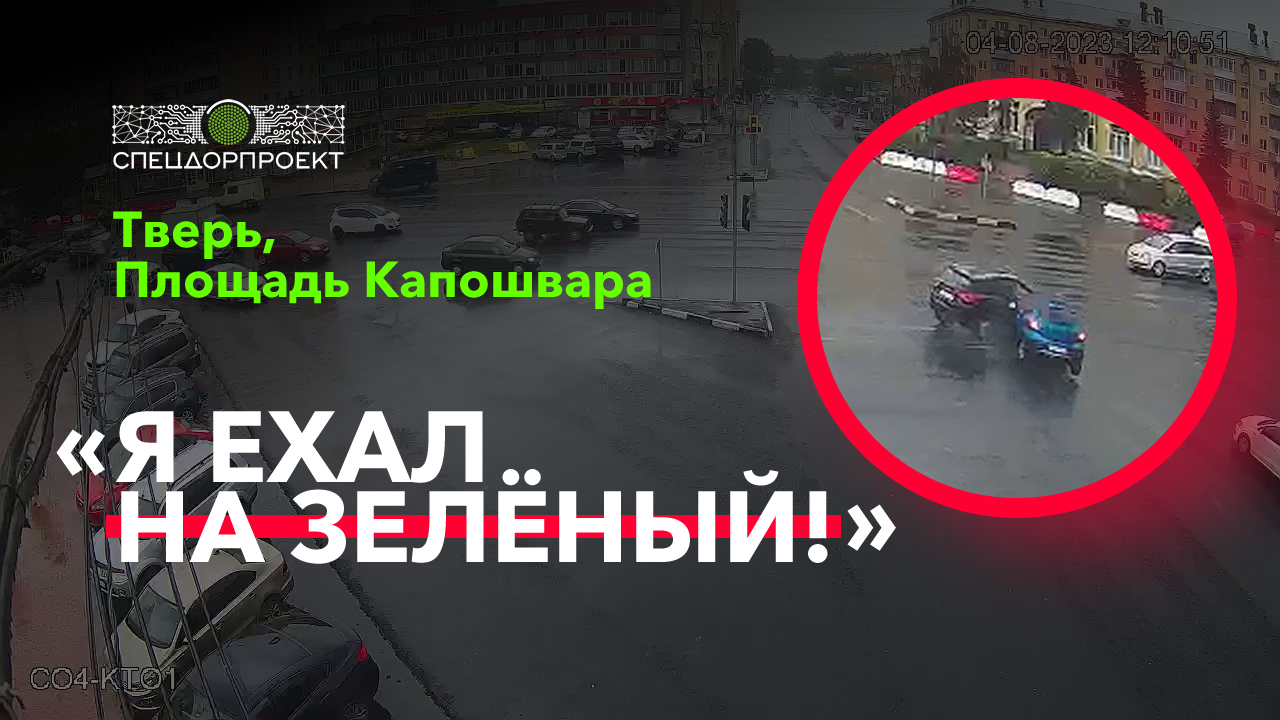 Всем добрый вечер!?? ?4 августа на площади Капошвара в Твери произошло ДТП – столкнулись две машины с разных направлений. И оба водителя в ГИБДД утверждали, что им был дан зелёный свет! Смотрим ролик: на одном направлении «зелёный» оказался красным, на втором – мигающим зелёным, уже переключающимся на жёлтый ? Все наши «Умные перекрёстки» оснащены камерами со 100-процентным видеопокрытием перекрёстка. Так что мы всегда видим и знаем, как объект работает на самом деле ? Подписывайся на наш канал, чтобы знать, что творится на российских дорогах!