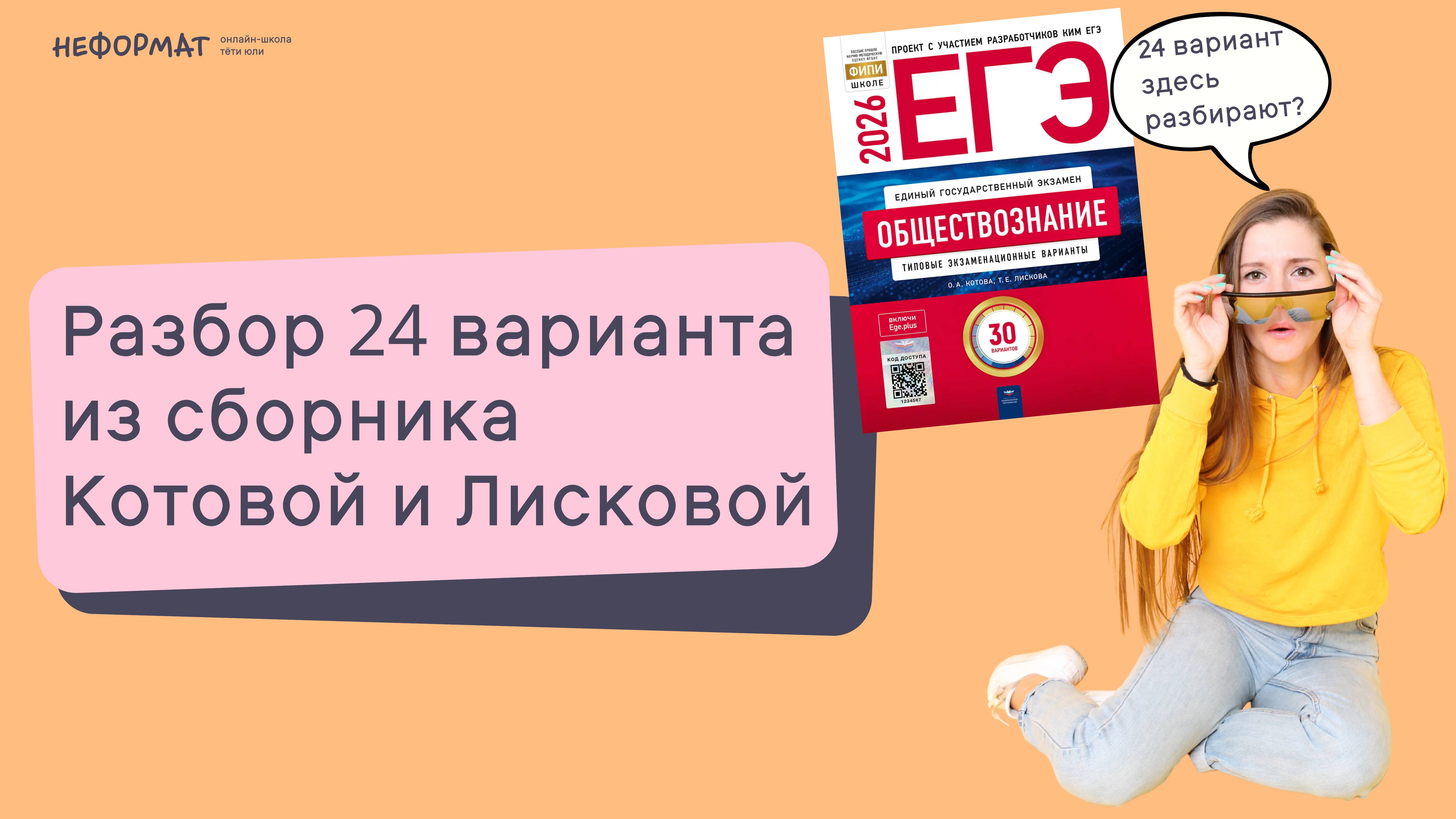 Разбор 24 варианта из сборника Котовой и Лисковой. ЕГЭ обществознание! Как отвечать легко?
