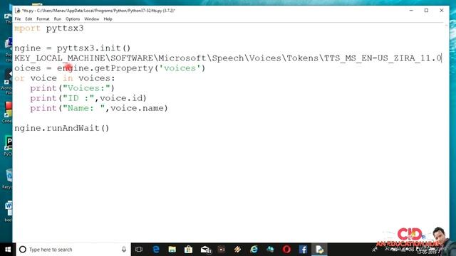 In this short video tutorial , you will learn, how to make a simple text to speech app in python language. Just Type ur text and ur program will speak ur text in ur desired voice. In the next upcoming video Tutorials, we'll make JARVIS desktop assistant in python, SUBSCRIBE our Channel : https://www.youtube.com/c/Cidaneducationhub For getting notifications and updates of next videos. Join us on facebook : https://www.fb.me/cideduhub Twitter : https://www.twitter.com/A1918manav Instagram : https://www.instagram.com/a1918manav GitHub : https://www.github.com/manav1918 ==================================== Donate and appreciate : GPay :cidaneducationhub@oksbi PayTm :8271482337@paytm PayPal : https://www.paypal.me/cideduhub =================================== Stay Tuned! Have a nice Day!