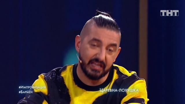 Импровизация «Бармен». Роль бармена исполнит гость выпуска - Вадим Галыгин. К нему будут заглядывать брошенные парни. Играть они будут одного человека, которого бросила одна девушка. По рассказам парней бармену нужно будет понять, кто она была.