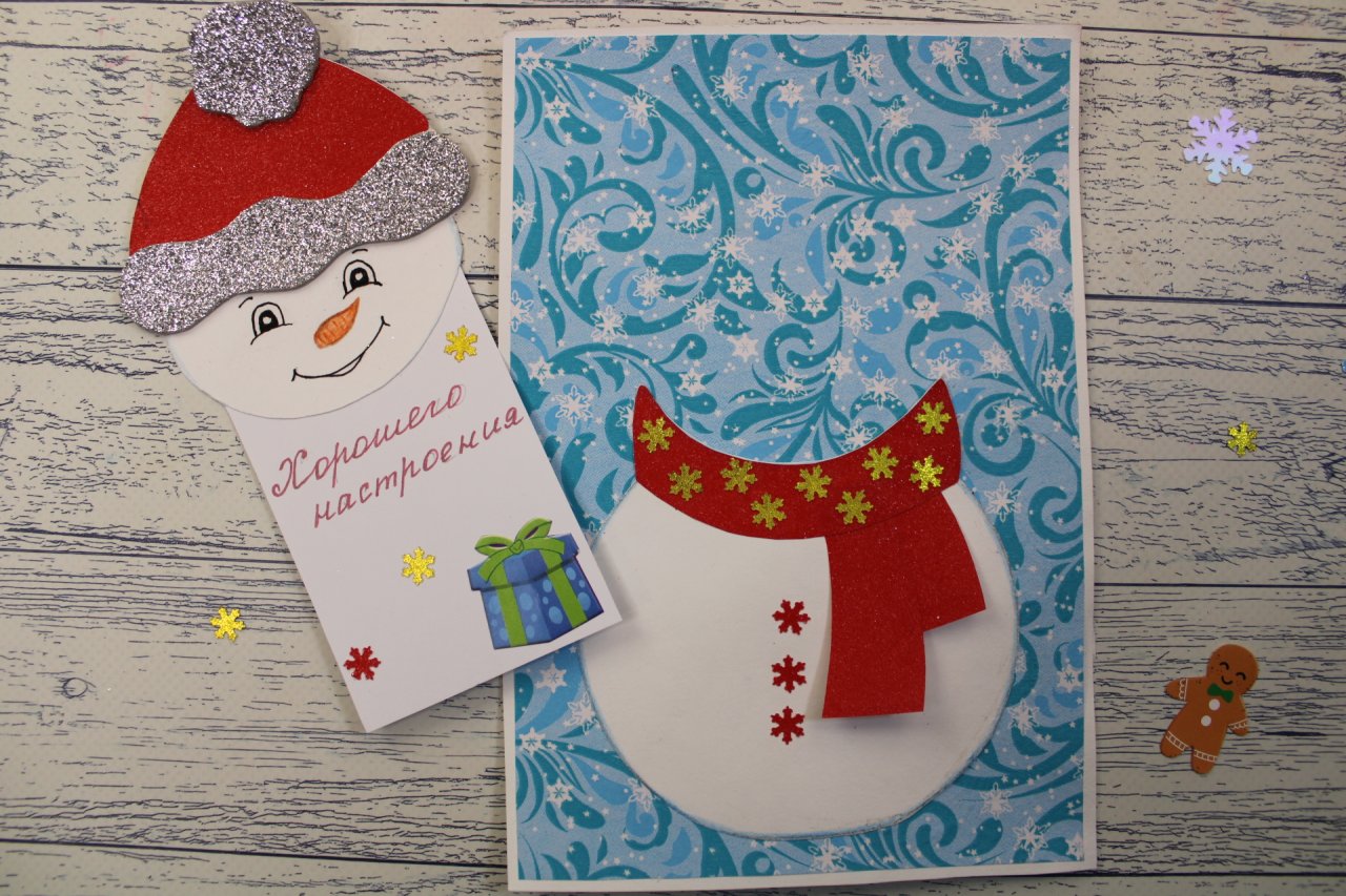 СНЕГОВИК С СЮРПРИЗОМ. Забавная поздравительная открытка на НОВЫЙ ГОД своими руками.