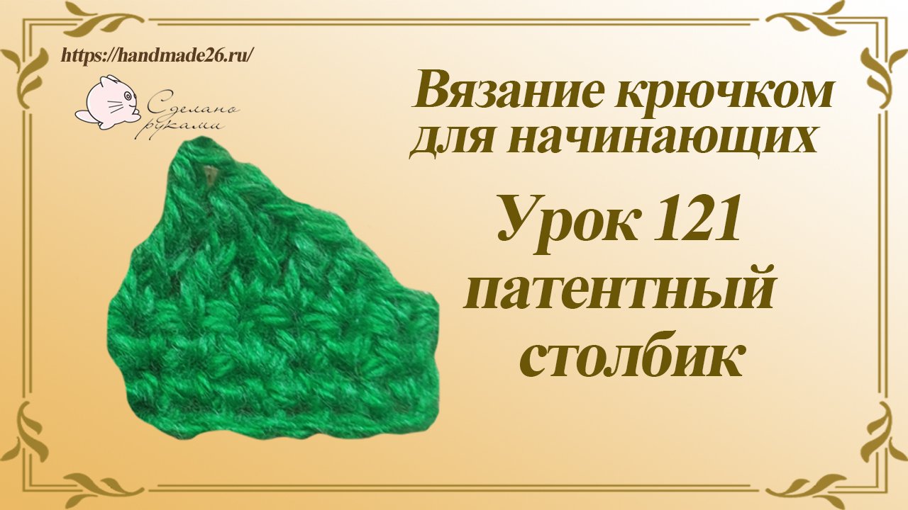 Приглашаю связать патентный столбик. Патентный столбик или столбик на воздушной петле - это столбик с накидом или без, но связанный на шаг больше. Патентный столбик с одним накидом оличается от просто столбика с одним накидом размером и способом вязания. Патентный столбик вяжется на основе ССН, но провязываем его не в два, а в три приема, что делает патентный столбик чуть выше столбика с одним накидом, но ниже, чем столбик с двумя накидами. Патентный столбик получается более плотным и эту плотность нужно учитывать при выборе вязаного изделия. Курс вязание крючком для начинающих тут: https://handmade26.ru/video-tutirial/vyazanie/uroki/ Мои мастер классы можно увидеть тут: https://handmade26.ru/catalog/vyazanie/master-klassy/ Мои работы тут: https://handmade26.ru/