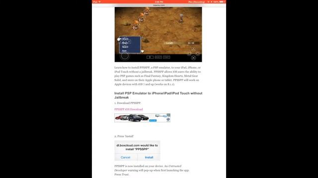 Learn how to install PPSSPP (PSP emulator) onto your iPad, iPhone, or iPod Touch without a jailbreak for free. Works on iOS 8.1 and lower. Full tutorial and download link: http://iosemu.com