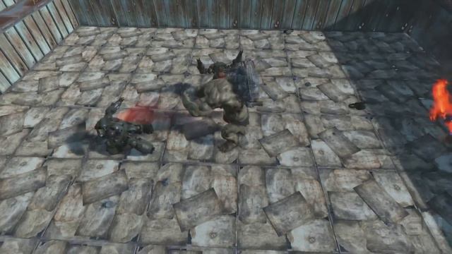 We created a ring to pit one Epic Behemoth against three Sentry Bots in a battle royale. Watch these two duke it out in a Fallout 4 bash.