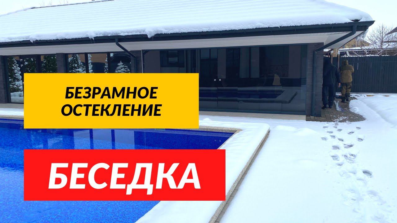 Безрамное остекление Беседка. Раздвижное остекление Беседки.