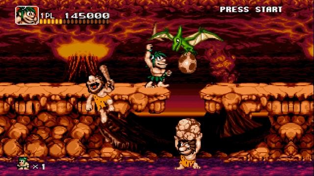 Сюжет Давным-давно где-то в Африке жили два первобытных племени. Однажды ночью люди одного из племён украли всех женщин у другого племени. Теперь первобытным людям Джо и Маку нужно пробраться к соседям и вернуть украденных женщин в своё племя. Обзор игры Кадр из игры для платформы NES Различные версии игры сходны между собой по графическому оформлению (хотя графика в версии для карманной консоли Game Boy несколько иная) и геймплею, но различаются звуковым рядом. Главные герои игры — древние люди (возможно, кроманьонцы) Джо и Мак. Им предстоит пройти несколько уровней, добраться до вождя вражеского племени и победить его. Уровни в игре представляют собой локации с боковым сайд-скролингом и двухмерной графикой (джунгли, река, вулкан, пещера), на которых находится множество врагов и препятствий. Некоторые из уровней поделены на две части, разделённые между собой развилками. Игрок может выбирать, по какому из двух путей следовать дальше. Враги здесь в основном — люди из вражеского племени и мелкие динозавры. Полезных предметов в игре два типа. Оружие находится в динозавровых яйцах; предметы, пополняющие здоровье персонажей, остаются после уничтожения врагов. Оружия в игре представлено несколько типов: помимо обычных каменных молотков, которыми вооружены герои, есть также каменные колеса, бумеранги, заострённые кости и факелы. В конце большинства уровней находится босс. Среди них — динозавры (например, тираннозавр или птеранодон), гигантское плотоядное растение, скелет динозавра и мамонт. Финальный босс — вождь вражеского племени.