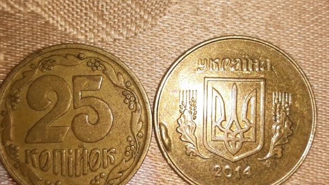 25 копеек 2014 Украина. Попалась бракованная монета.Думаю особой ценности не представляет