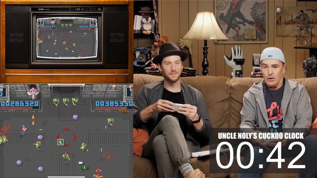 The year is 1999 and we've dropped Nolan North and Troy Baker into a game show where they must kill hundreds of guys with bats and a giant mutated head on a tank in order to win super cool prizes like VCR's and toasters. That's right we're playing the 1990 super violent arcade game SMASH T.V.. Um...what's a VCR? Stick around for some more advice from Uncle Noly and a breakdown on the meaning on "locationships." And a story about Troy stealing a car?!? Is this real life? No. This is RETRO REPLAY. Let's Play! 🕹️ Learn more about the 1990 do-or-die adventure game Smash T.V. https://en.wikipedia.org/wiki/Smash_TV https://www.giantbomb.com/smash-tv/3030-16194/ https://www.arcade-museum.com/game_detail.php?game_id=9591 We finally have merch! Shirts, hoodies, pins! https://retroreplayshow.com/shop/ Check out the RETRO REPLAY website and sign up for our newsletter. https://retroreplayshow.com/ Follow Nolan North: Twitter: https://twitter.com/nolan_north Instagram: https://www.instagram.com/reallynolannorth/ Follow Troy Baker Twitter: https://twitter.com/TroyBakerVA Instagram: https://www.instagram.com/officialtroybaker/ Follow Retro Replay Twitter: https://twitter.com/retroreplayshow Instagram: https://www.instagram.com/retroreplayshow Facebook: https://www.facebook.com/RetroReplayShow