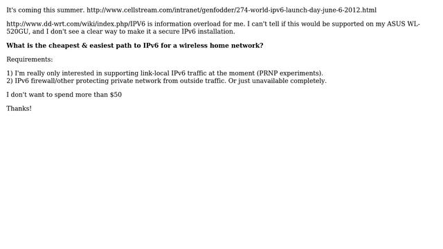 IPv6 on ASUS WL-520GU or other