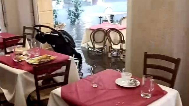 Вода затекла в ресторан во время наводнения в Италии