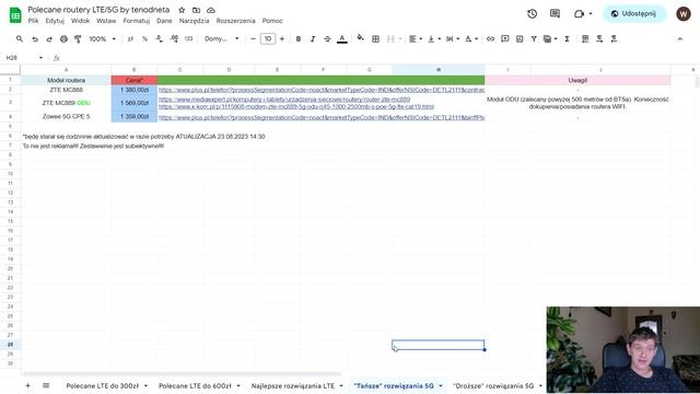 Link do arkuszy z zestawieniami routerów: https://docs.google.com/spreadsheets/d/1spGFns2TDcqtYaCG_d58YDSQeF0zhfl4yk-jqK0WzbI/edit?usp=sharing Spis treści 0:00 Wstęp 0:11 Routery LTE do 300zł 1:35 Routery LTE do 600zł 4:10 Najlepsze routery LTE 5:11 Tańsze rozwiązania 5G 7:52 Droższe rozwiązania 5G 10:47 Routery mobilne 13:14 Podsumowanie Zestawienie jest całkowicie subiektywne, a opinie przedstawione w filmie są moimi przemyśleniami na temat tych routerów!!! [#autopromocja] kontakt: tenodneta@gmail.com Facebook: https://www.facebook.com/tenodneta Instagram: https://www.instagram.com/tenodnetapl/ Mój Twitter: https://twitter.com/Wojtek_Kubala