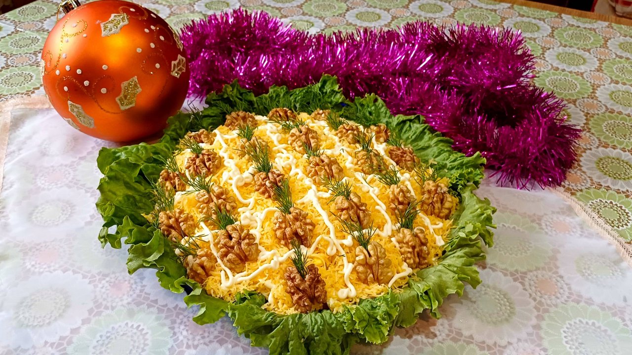Всем привет!!!Приближаются новогодние праздники!!! Все их любят и хотят приготовить, что - то очень вкусное, красивое, необычное!!! Я хочу предложить вам приготовить очень нежный, вкусный и красивый салат с ананасом. Советую приготовить!!! Всем желаю счастья, здоровья, любви!!! И отлично встретить новый год!!! Подписывайтесь на мой канал!!! Будем готовить вместе!!! Ингредиенты: Куриная копчёная грудка - 100 гр Ананасы консервированные - 1 банка Кукуруза консервированная - 1 банка Яйца - 3 шт Сыр твёрдый - 100 гр Майонез - 2 стол. ложки Грецкие Орехи- 100 гр Листья салата - 1 пучок
