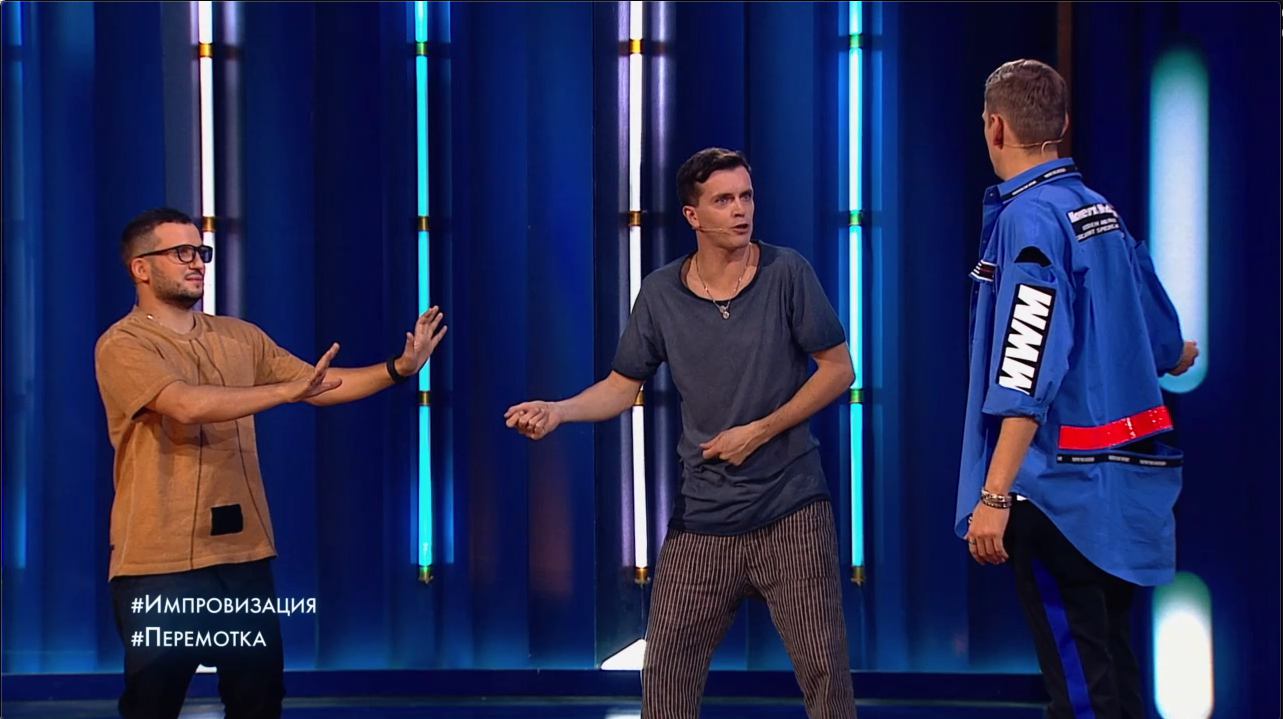 Импровизация: "Перемотка". Суть импровизации в том, что ведущий в любой момент времени может попросить ребят отмотать события на определенный отрезок, а им придется заново перепредумать свой номер.