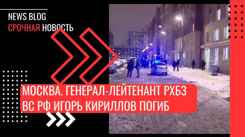 Москва Два человека погибли при взрыве в доме на Рязанском проспекте. Сообщают, что это могло быть покушение, взрывное устройство привели в действие дистанционно. Очевидцы сообщили, хлопок раздался в 6:11 утра. Предварительно, в подъезде. Около дома лежат два человека. Вероятно, было совершено покушение. СВУ могло быть примотано к ручке электросамоката и приведено в действие дистанционно. Когда двое мужчин (предварительно, военные) подошли к двери, произошёл взрыв. Генерал-лейтенант РХБЗ ВС РФ Игорь Кириллов погиб в результате взрыва на Рязанском проспекте. Он был начальником войск радиационной, химической и биологической защиты ВС РФ. Погибший генерал на брифингах регулярно сообщал о подготовке ВСУ и Штатами терактов и военных преступлений — Летом 2022 года рассказывал об изучении в биолабораториях США на Украине передающихся через комаров вирусов; — В феврале Кириллов приводил примеры использования ВСУ токсичных веществ не только на фронте, но и для проведения терактов;