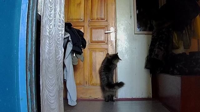 кот открывает двери