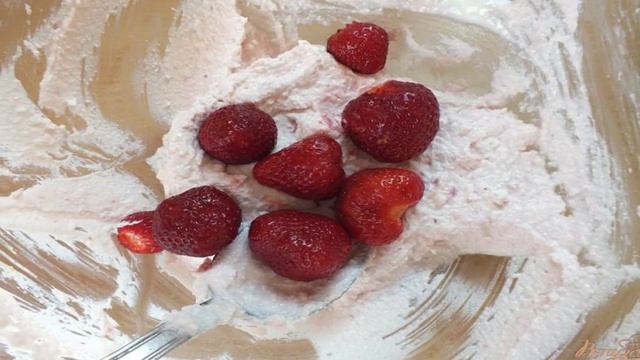 Творожный десерт с клубникой