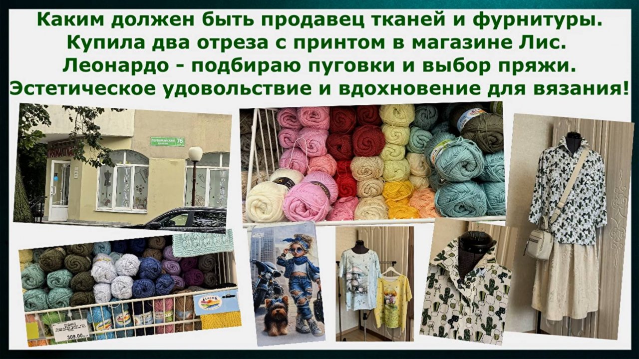 Профессионализм продавцов в тканях и фурнитуре. Купила новые ткани. Леонардо. Пряжа, пуговицы и тд