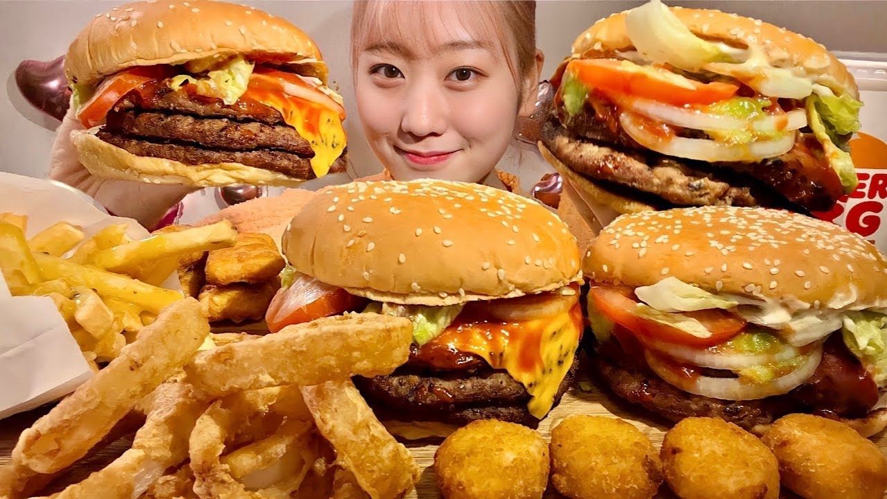 МУКБАНГ / Бургер Кинг - луковые кольца, картофель фри, бургеры 🍔🍟🧅