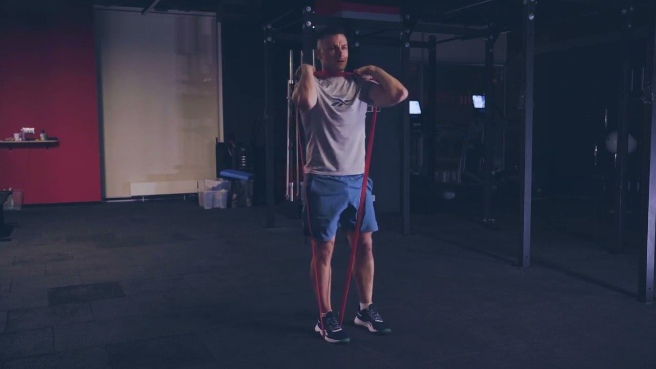 Выпад шагом назад с резиной на груди/ Reverse band front rack lunge