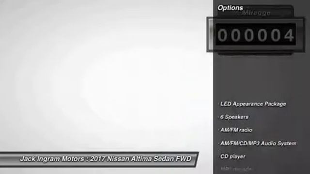 2017 Nissan Altima 2.5 SR http://www.JackIngram.com For more information on this vehicle and our full inventory, call us at 334-420-7700 Jack Ingram Motors 227 Eastern Blvd. Montgomery AL 36117 2017 Nissan Altima 2.5 SR CVT with Xtronic. 37/26 Highway/City MPGbrbrbrbrJack Ingram Motors won the Time Dealer of the Year for the state of Alabama because of our commitment and service to the community and our customers. We are continually recognized as the #1 volume family owned new and used car dealer in the area. Price includes: $2,000 - Nissan Customer Cash - 2017 Altima. Exp. 11/30/2016
